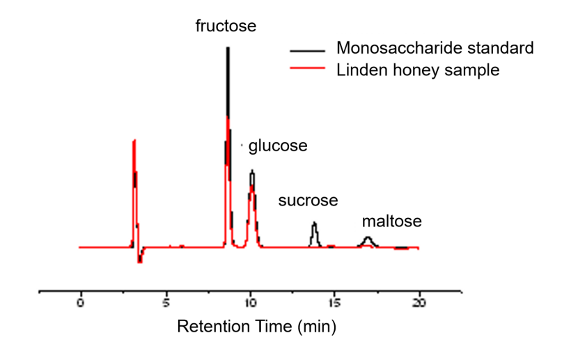 The system suitability was evaluated against the Chinese Pharmacopoeia requirements for honey. The results (Table 3) indicate that the sample meets all specifications: fructose+glucose >60% (70.41%), fructose/glucose ratio >1.0 (1.09), sucrose <5.0% (0.23%), and maltose <5.0% (1.79%). The method is reliable and suitable for routine analysis of sugars in honey.