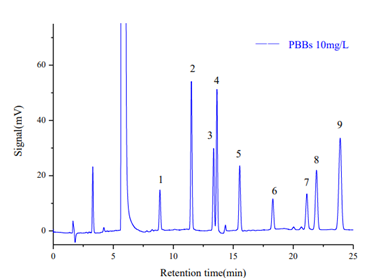 Figure 1. Chromatogram of the polychlorinated piphenyls (PBBs) standard (10mg/L).