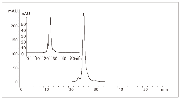 The Amber SEC stationary phase is a neutral, hydrophilic stationary phase. There is almost no non-specific interaction between proteins, other biomolecules and the stationary phase of Amber SEC columns. Proteins do not adsorb to the surface of the silica gel matrix, thus SEC columns deliver high protein recovery while maintaining excellent protein activity. For example, the sample recovery rate exceeds 95% in the separation of acidic protein BSA and basic protein lysozyme.