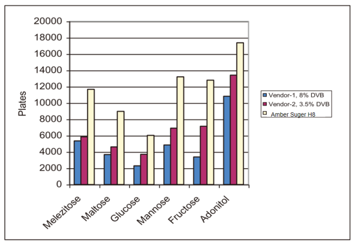 The superior manufacturing process and advanced packing technology of Amber Sugar columns ensure their high stability. The resin remains stable in pure water and other aqueous buffer systems even under elevated temperature conditions.