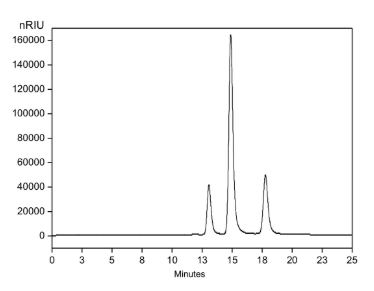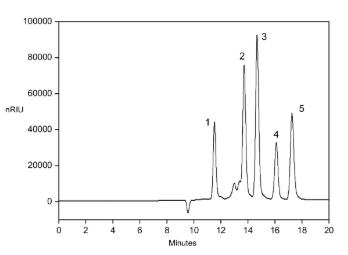 The availability of multiple selectable ion forms for Amber Sugar resins enables the Amber Sugar series columns to be widely used for the separation of sugar molecules, sugar alcohols and other water-soluble substances in various matrices. For example, arabinose, ribitol and arabitol are difficult to separate on H-form columns, yet achieve baseline separation on Ca-form columns; xylose, galactose and mannose elute as an overlapping peak on Ca-form columns, while they can be eluted sequentially as individual peaks on Pb-form columns.