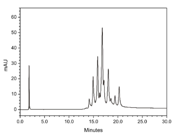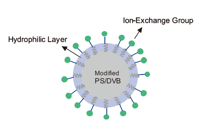 The ion exchange chromatography columns include four models: Amber SCX 5μm, Amber SAX 5μm, Amber WCX 5μm and Amber WAX 5μm. Their packing materials are rigid, non-porous spherical polystyrene/divinylbenzene (PS/DVB) particles with a high cross-linking degree. A nanoscale-thickness neutral polymer film with high hydrophilicity is covalently bonded to the surface of the PS/DVB resin, fully coating the hydrophobic PS/DVB resin surface with this hydrophilic material. Ion exchange functional groups are then densely and uniformly bonded to the surface of the hydrophilic layer, yielding a high-capacity ion exchange layer. Amber ion exchange resins are suitable for the separation of proteins, oligonucleotides, polypeptides, polysaccharides, cell lysates, nanoparticles and nanotubes
