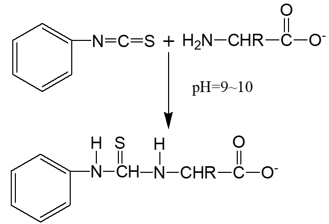The Elite-AAP amino acid analysis system uses phenyl isothiocyanate (PITC) as the pre-column derivatization reagent. Under alkaline conditions, amino acids react with PITC to form phenylamino thioformamide (PTC) derivatives with ultraviolet absorption, which are then separated and detected.