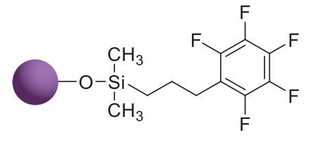 Ultra-pure porous spherical silica gel, bonded with pentafluorophenyl, has uniform pore size and particle size distribution, and exhibits excellent batch-to-batch stability. It has multiple retention mechanisms, providing complementary special chromatographic separation selectivity for conventional C18 columns. Due to the strong dipole-inducing effect of pentafluorophenyl, it has strong separation ability for polarizable substances such as aromatic compounds, heterocyclic compounds, and halides, and is particularly suitable for separating aromatic compounds, stereoisomers, and basic compounds.