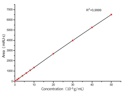 The D3200 UV-Vis detector uses a 24-bit AD chip, providing high accuracy and a 2.5AU linear range to meet both high-concentration and trace analysis needs. It achieves R²=0.9999 across 0.1–50 µL injections, performing excellently for all sample sizes.